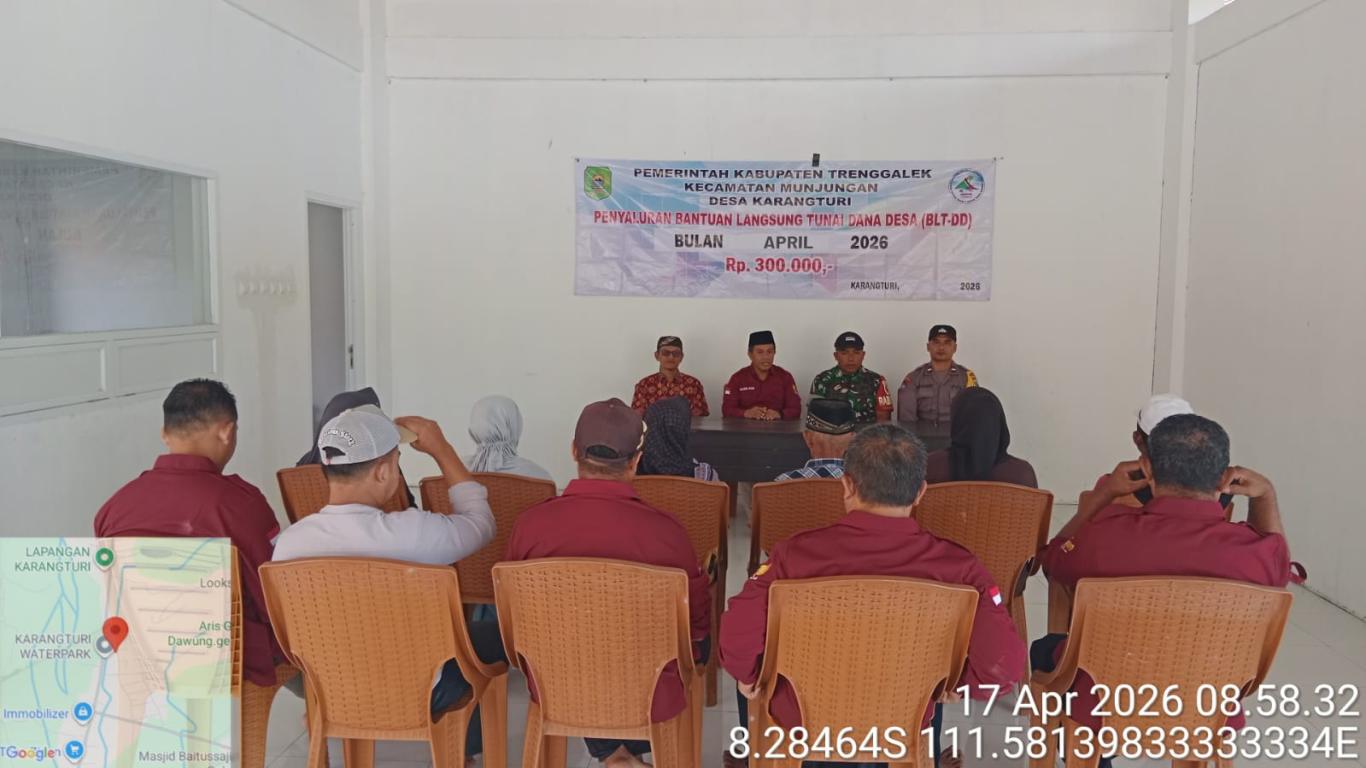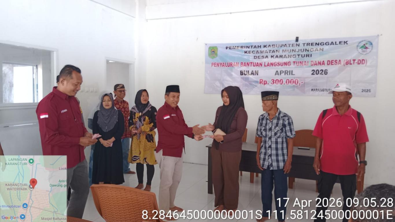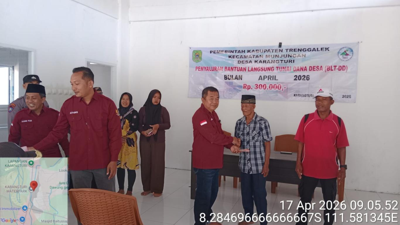 Pemerintah Desa Karangturi, Kecamatan Munjungan, kembali menunjukkan komitmennya dalam menjaga jaring pengaman sosial bagi warga yang membutuhkan. Bertempat di Aula Resto Water Park Desa Karangturi, telah dilaksanakan penyaluran Bantuan Langsung Tunai Dana Desa (BLT-DD) Tahap II pada Jum’at, 17 April 2026.